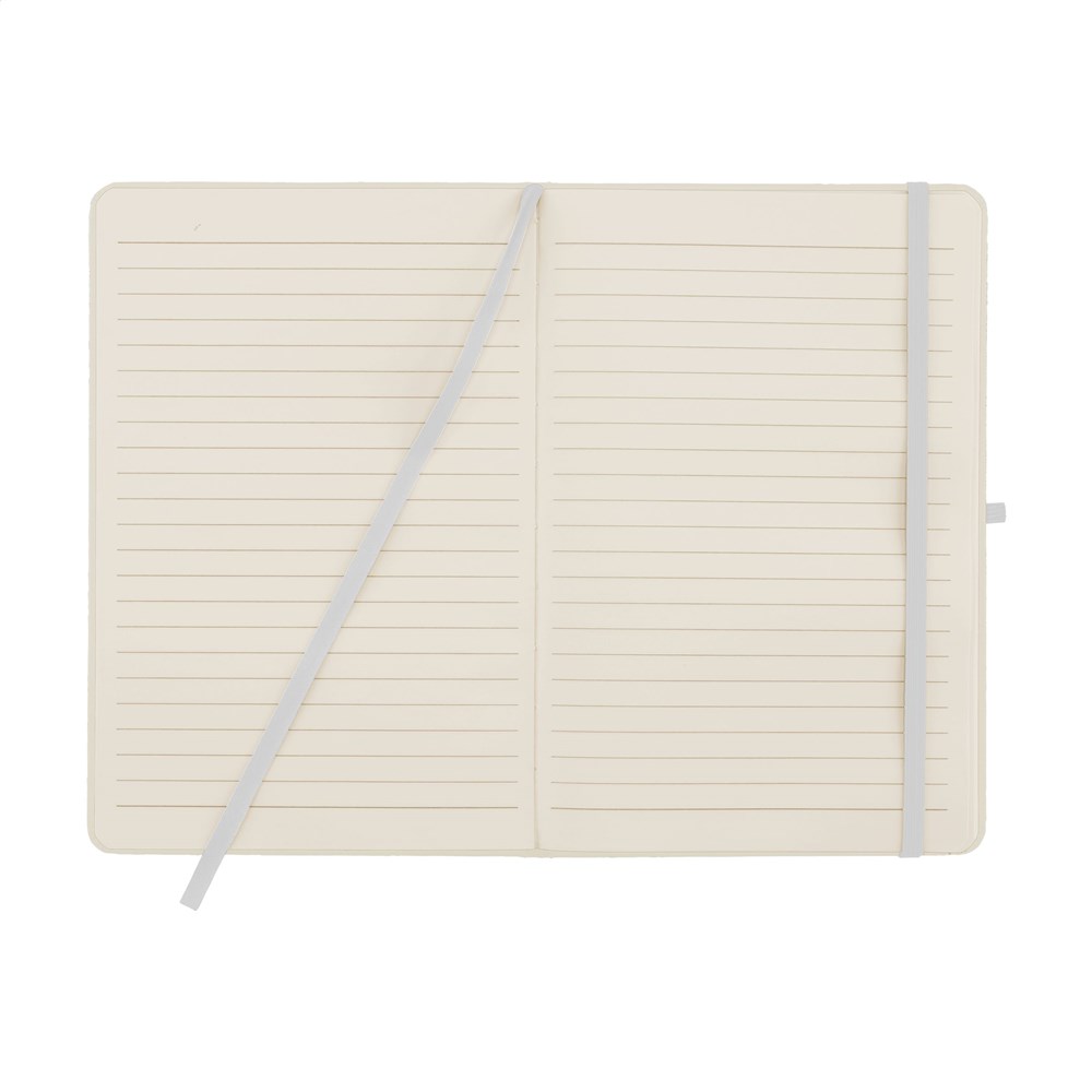 WoW! Praktisches Notizbuch im A5-Format. Mit hartem RPET-Cover und ca. 80 Blatt/160 Seiten cremefarbenem, liniertem Papier (70 g/m²). Mit praktischem Verschlussgummiband, Lesezeichen und Stiftschlaufe.